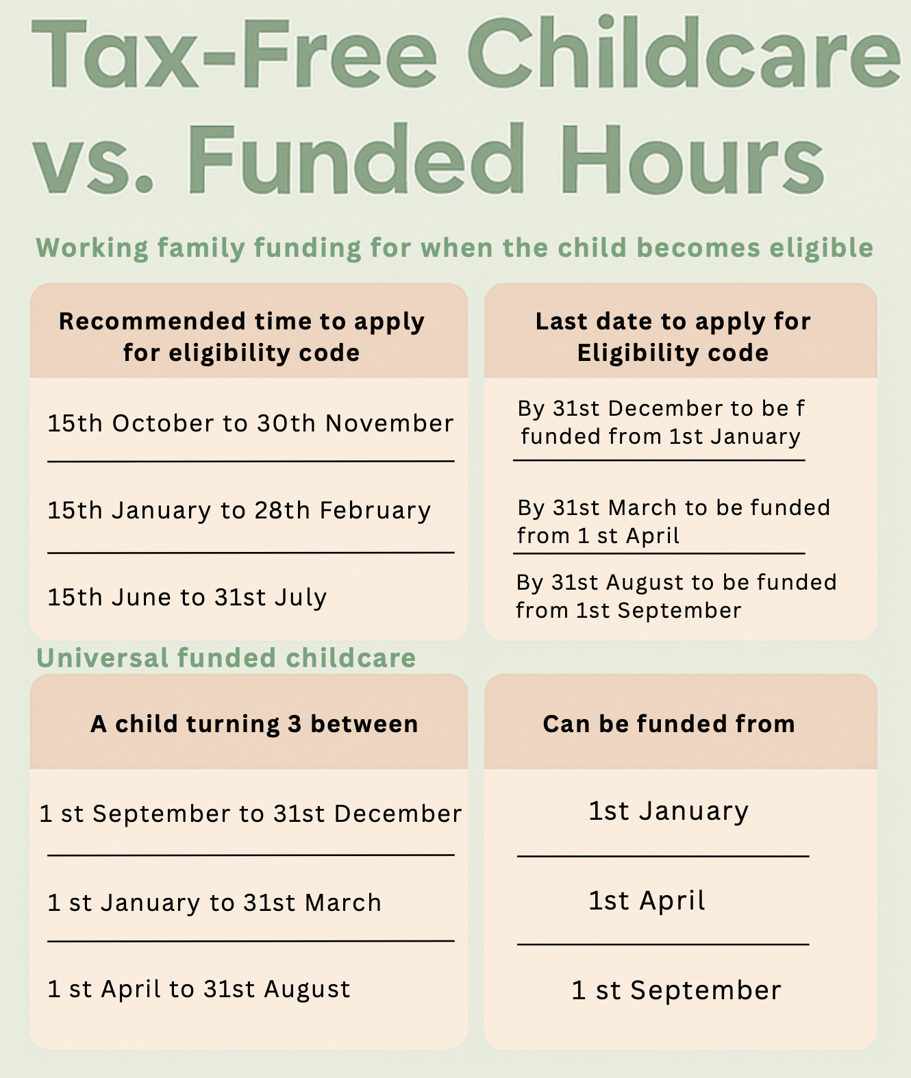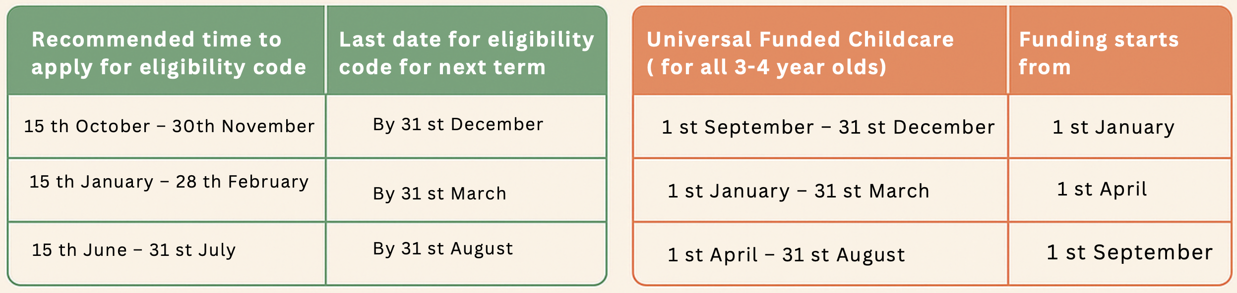 Navigating government funding can sometimes feel confusing — but at Moonlight Nursery, we’re here to make it simple. Funding availability depends on your child’s age and when you apply. Below is an easy guide to help you understand when to apply based on your child’s age and eligibility.